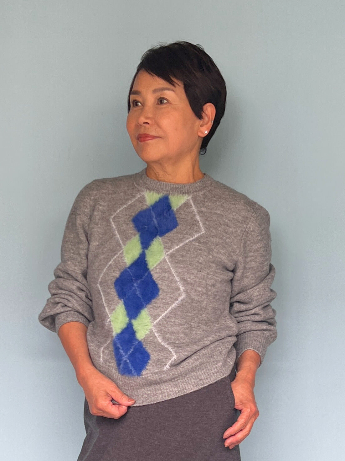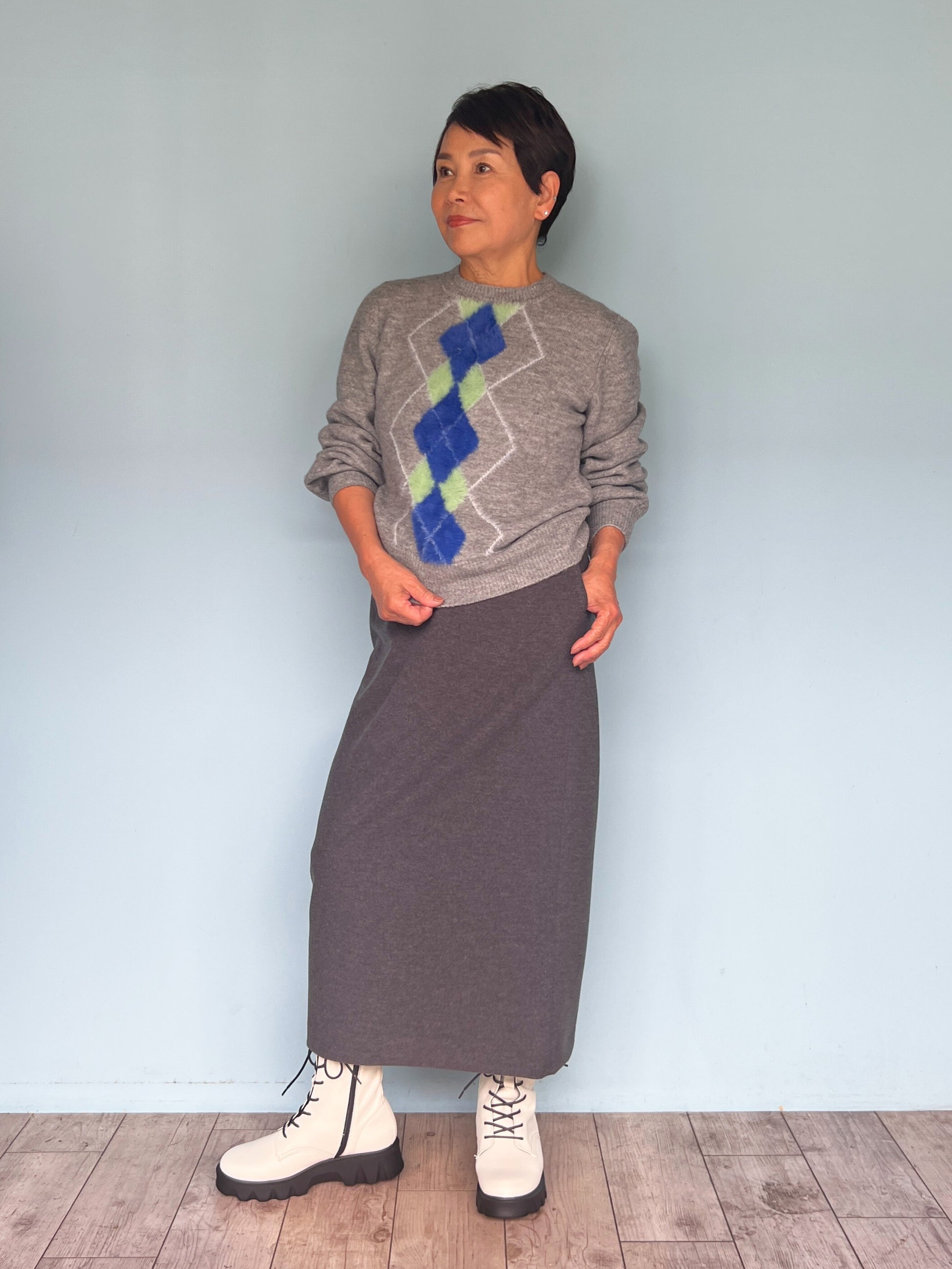 センターラインにアーガイル柄でアクセントを入れてお洒落な大人女子に