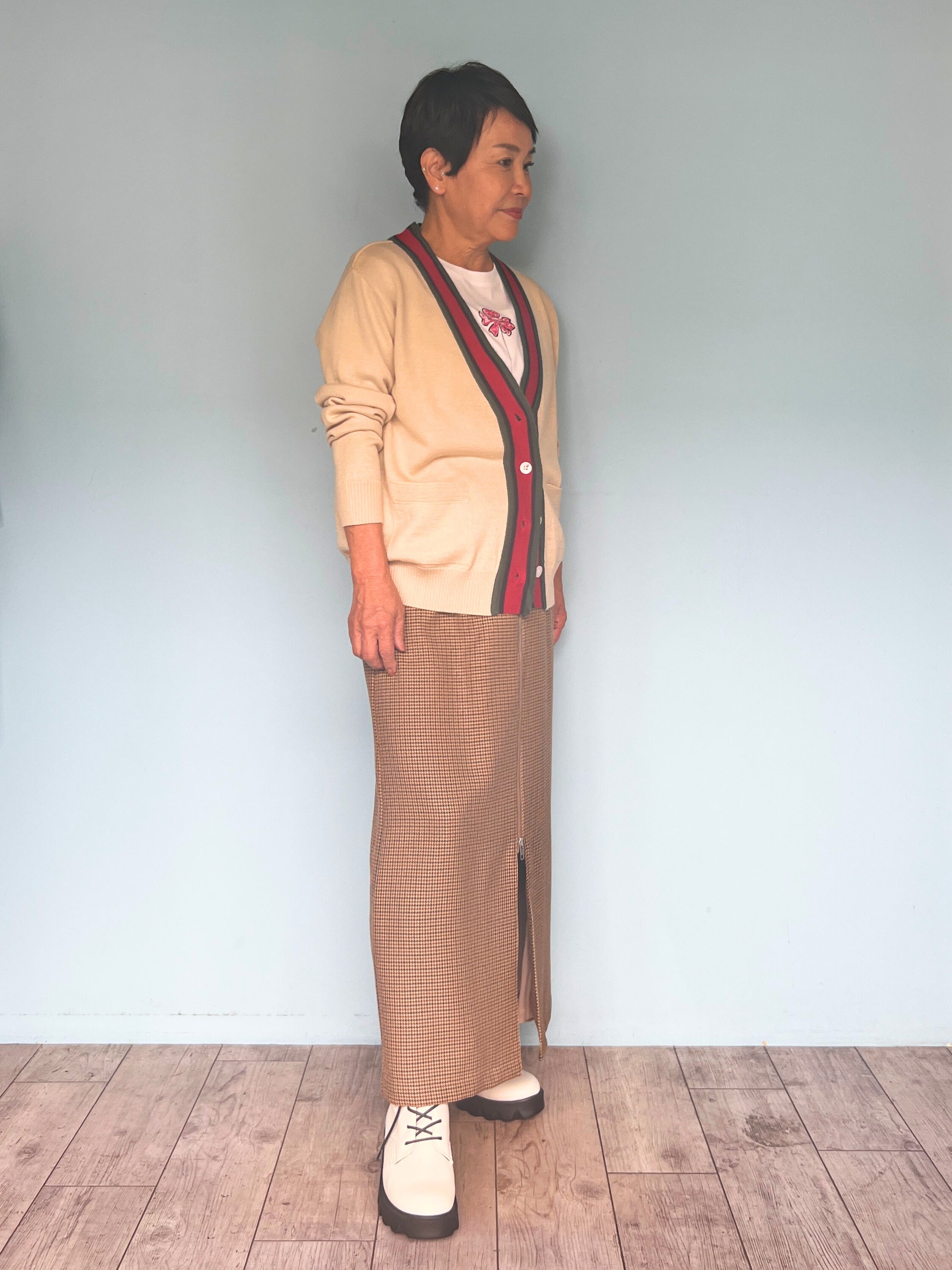 暖かみのあるチェック柄にジップデザインがアクセント。ほっそり縦長なIラインシルエットなのでオーバーサイズのトップスともバランス良く着こなせます。
